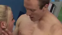 The blonde office babe had been flirting with her colleague for weeks, building sexual tension between them in the office.They were both tired of their monotonous work lives, and this newfound excitement had awakened something inside each of them.On a Friday night after the office had closed down, they decided to take the plunge into the world of passion theyd been fantasizing about for so long.As she entered his apartment, the blonde babe could feel her heart pounding in anticipation.Her colleague, a tall and muscular man, awaited her with eager eyes that spoke volumes to her about what was to come.They began to kiss passionately, their lips locked together as they explored one anothers mouths with hungry desire.Their hands roamed each others bodies, feeling the smooth skin and firm muscles that made up the perfect combination of two lovers destined for an unforgettable night.The man slowly undressed her, revealing her stunning figure.Her perky blonde hair cascaded down her shoulders as he began to explore her body with his mouth, kissing her neck, sucking on her earlobes, and licking the sensitive skin around her collarbone.He traced intricate patterns with his fingertips, teasing and tantalizing her.The blonde office babe could feel her arousal growing as she felt the heat building inside of her.Her breaths grew heavier, and her heart raced faster, eager to take the next step in this adventure they had begun together.She knew that it was time for her to reciprocate his attentions, so she moved her hands down to undress him as well.Her eyes locked onto his toned stomach as she began to trace patterns on it with her fingers, feeling every ripple and muscle in the process.He felt her touch through his boxers, and their eyes met, sending sparks of excitement and anticipation through both of them.Her hand moved lower, causing a wave of goosebumps to run down his body as he realized what she was doing.She reached for his erect cock through his clothes, feeling it swell even more under her touch.With one swift motion, the blonde babe removed his boxers, revealing his impressive manhood.He was at her mercy now, and she could see the hunger in his eyes as they both prepared to give into their desires fully.She eagerly engulfed his dick with her warm mouth, sucking and slurping on it, using her tongue expertly as a way to get him even more turned on.Her hands caressed his balls gently, adding another layer of pleasure that would drive him mad with desire.Her colleague couldnt hold back any longer he wanted to taste every part of the blonde office babe that he had been fantasizing about for so long.He lay her down on his soft, inviting bed and began to devour her pussy.He could smell her arousal and feel how wet she was just from their previous acts of passion.His tongue danced between her lips, slipping in and out to tease and pleasure her clit as his fingers went inside her, rubbing and fingering her in such a way that drove her wild.Soon, the blonde office babe couldnt take any more, she needed to feel him deep inside of her.They switched positions, and he entered her, their bodies moving together in perfect harmony as they found a rhythm that pushed them both closer to the edge.The friction of their skin sent shivers down their spines, and the heat of their passion threatened to consume them entirely.Their breaths grew faster and more desperate, every gasp echoing the intensity of their lovemaking.Finally, when she could bear no more anticipation, the blonde office babe let herself fall over the edge first.She came loudly, her walls clenching tightly around his dick as a wave of pleasure washed over her, her body trembling uncontrollably.Watching her lose control made her colleagues desire skyrocket even further he felt himself ready to explode.He pulled out of her just in time, his cock pulsating with the need to release everything inside her, and with one final thrust, he let go.His cum splashed onto her belly, coating it in their shared passion as they both basked in the afterglow of their unforgettable night together.This was only the beginning their secret affair would continue for weeks, fueling the flames of passion that burned within each of them.The blonde office babe knew shed never forget the passion and desire they had found together, nor could she have anticipated just how wild things would get between these two coworkers turned lovers.